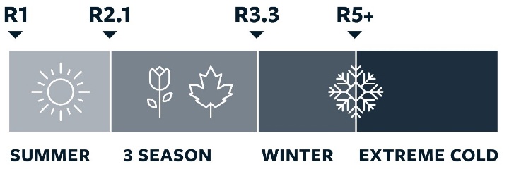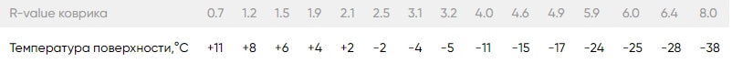 Соответствие R-Value коврика рекомендуемой температуре эксплуатации (по рекомендациям Therm-a-Rest и Exped):